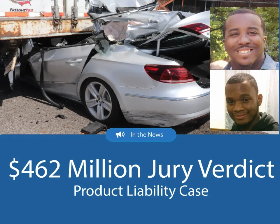 The $462 million verdict delivered by the jury holds Wabash National Corporation accountable for their actions and provides compensation to the families of both of the young fathers killed in this crash for their devastating loss.