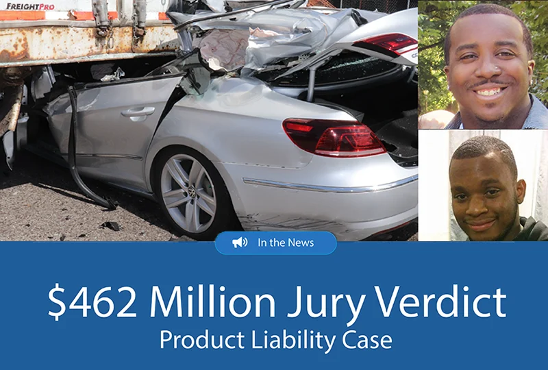 The $462 million verdict delivered by the jury holds Wabash National Corporation accountable for their actions and provides compensation to the families of both of the young fathers killed in this crash for their devastating loss.